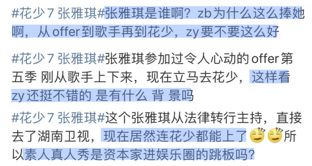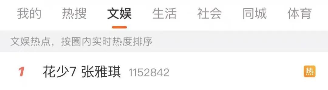 六月份开始录制前,张雅琪就曾因空降《花少7》,登上文娱榜热一👇