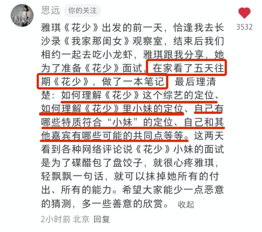 她认真研究往季节目,找准《花少》和“小妹”的定位,以及自己的匹配程度。