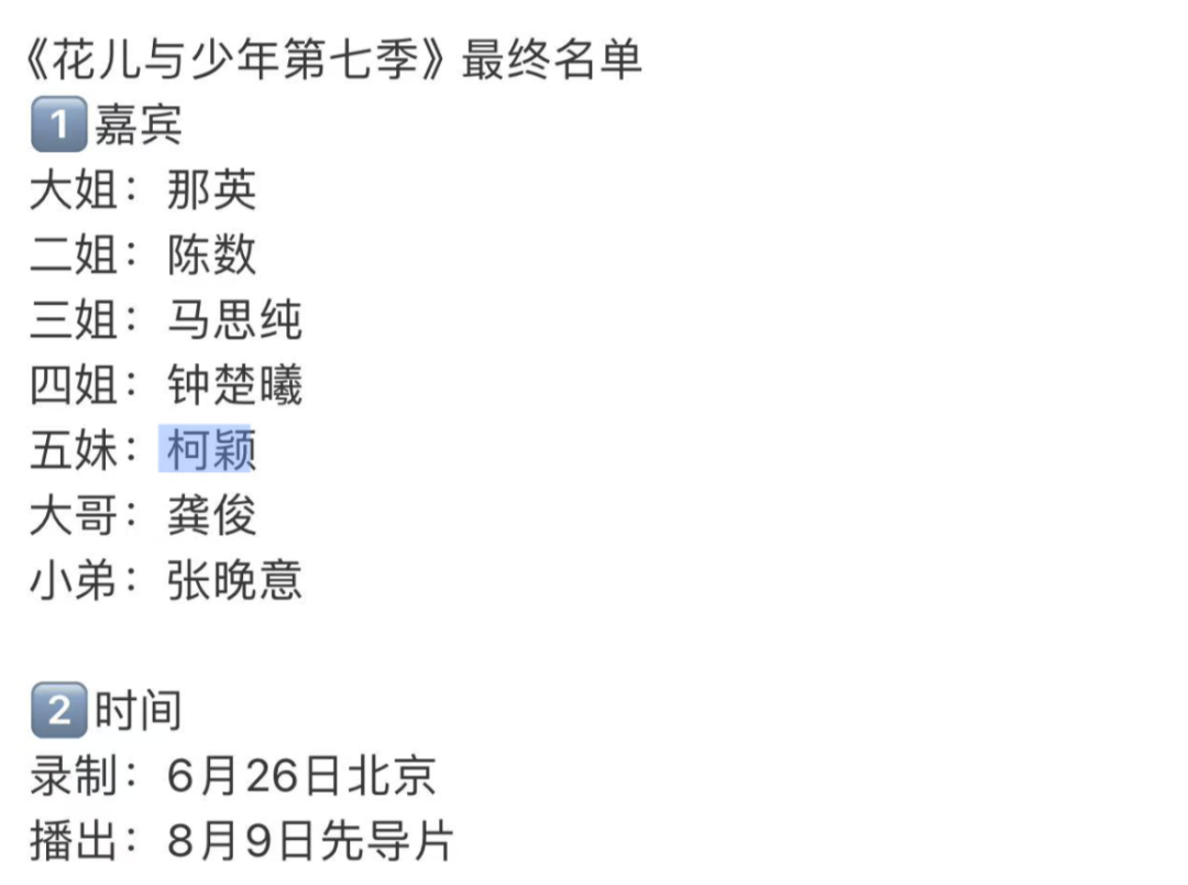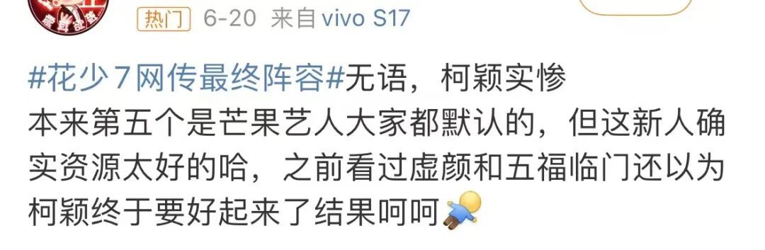 当时网传名单的“小妹”是芒果旗下的另一位女艺人柯颖,