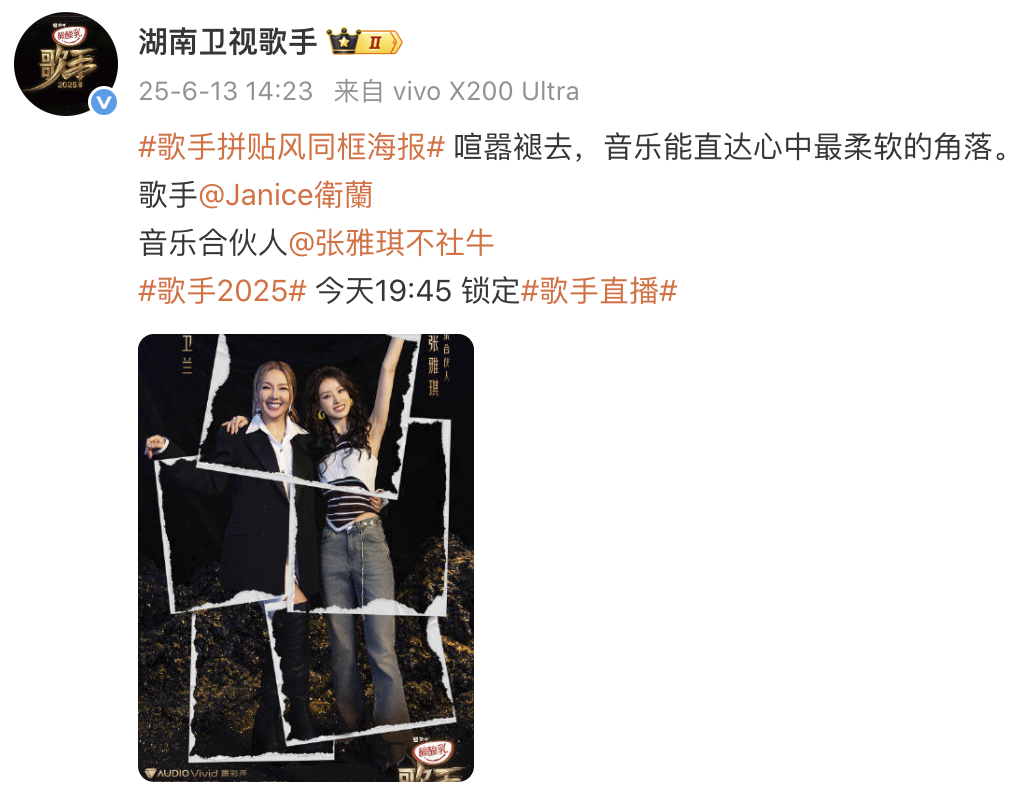 而后成为《歌手2025》里卫兰的音乐合伙人,