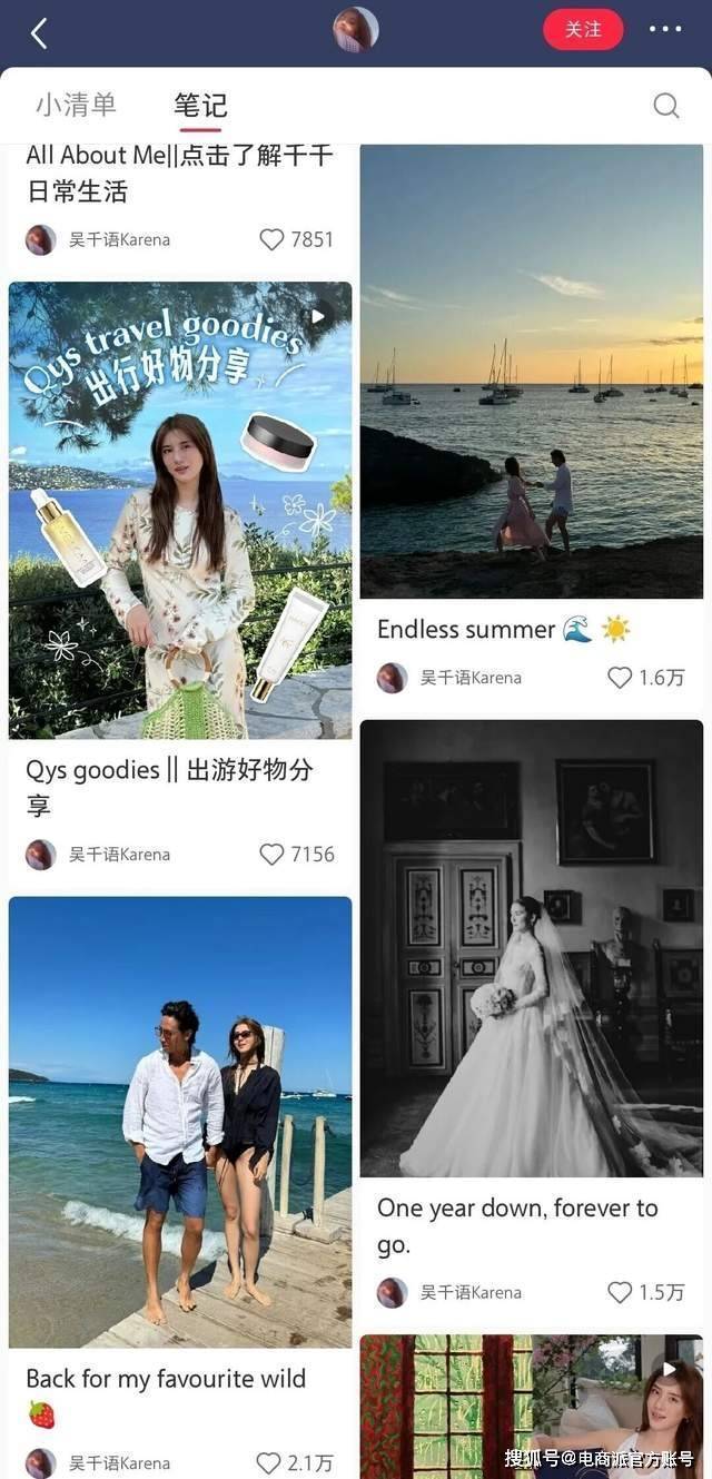 在吴千语的小红书账号上,还经常出现其与丈夫甜蜜秀恩爱的日常,同时一边演戏、一边带货,不得不说,这个豪门阔太当得很全面了。