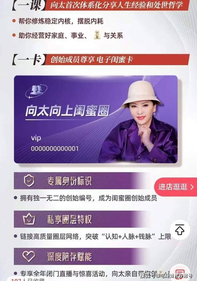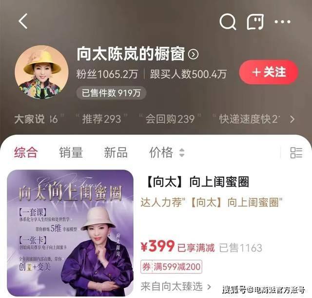 而前不久,向太还杀入了知识付费赛道,还携个人知识付费课程《向太向上闺蜜圈》登陆抖音、视频号及小红书直播间。商品标注原价599元,券后399元。