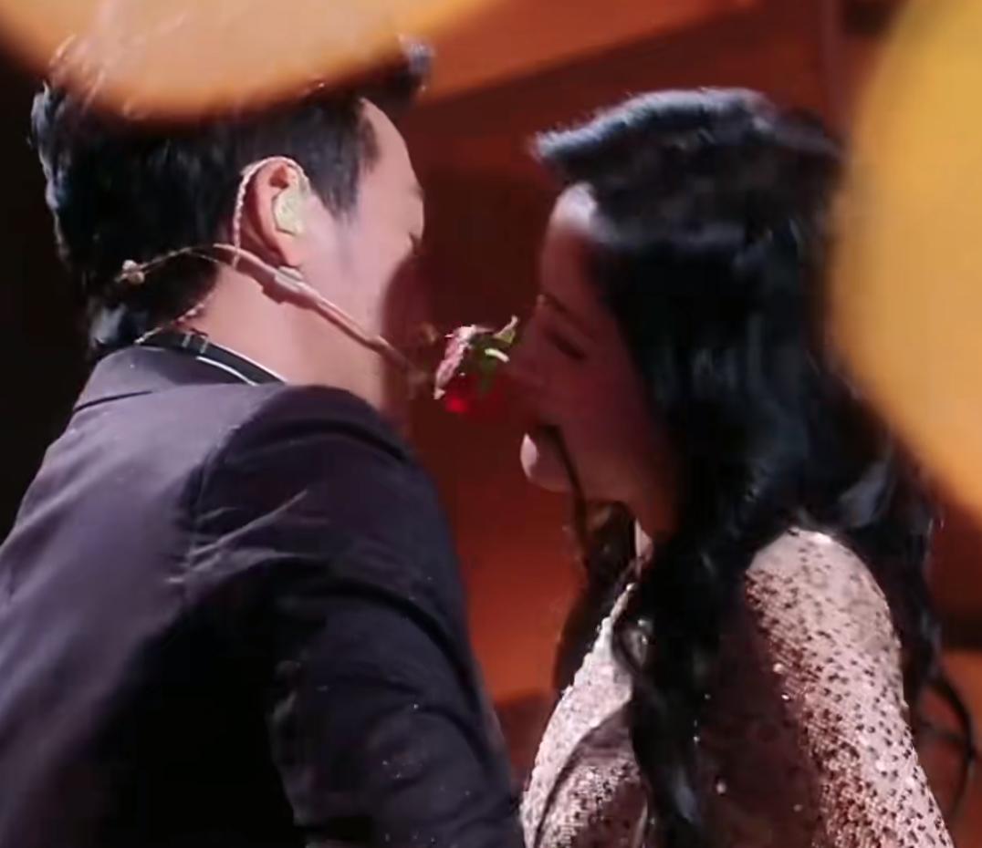 最让观众兴奋的一幕,肯定就是鲍蕾用嘴去接玫瑰花的时候。