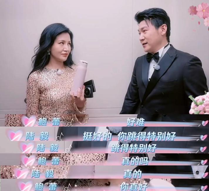 因为到了台下,鲍蕾说“好难”以后,陆毅马上回过去一句:“你跳得特别好”。
