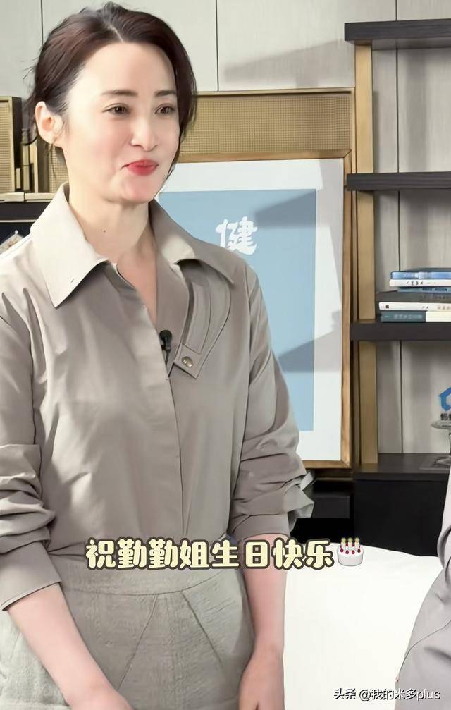 在正式开始庆祝之前,蒋勤勤还是很敬业先完成拍摄任务,换上浅紫色拖地礼服女神范十足,这么多年蒋勤勤对于身材管理非常严格,50岁了依然能像年轻女生们一样穿进去收腰的长裙,气质方面没得挑。不过可能是年龄真的上来了,蒋勤勤脸上胶原蛋白流失很明显,尤其是侧面感觉脸型不流畅了,已经初现老态。